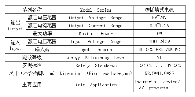 6W系列插墙式电源
